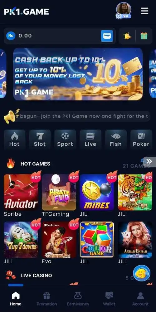 PK1 has quickly built a strong reputation as one of the most entertaining and rewarding mobile gaming platforms in Pakistan. It blends modern design with fast performance, creating an experience that feels both exciting and reliable. Every section of the app works smoothly—from account creation to withdrawals—giving players complete control over their gameplay. The variety of games, bonuses, and events keeps users engaged, while its clean layout makes it easy for anyone to navigate without confusion.
